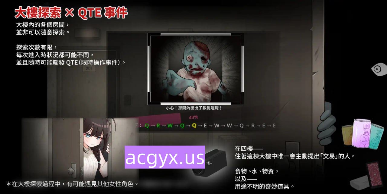 當你進入危險的房間時,可能會觸發限時操作事件。成功,便能帶回物資;失敗,則只能帶著傷口歸來。