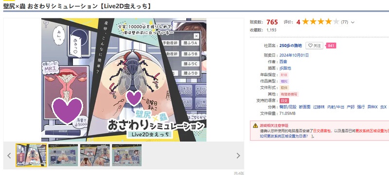 使用Live2D创建。屁股、虫子和剖面图会联动移动。